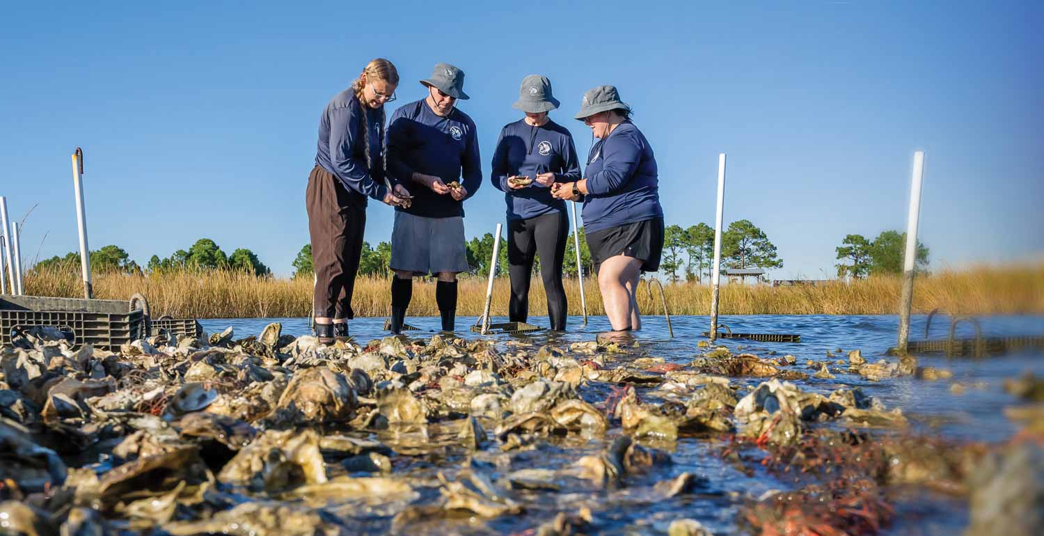 South Alabama ranks among the top universities in the country for the study of oyster biology, ecology and fisheries. Five USA faculty members — Drs. Sean Powers, Ronald Baker, Ruth Carmichael, Steven Scyphers and Lee Smee — conduct research on topics including: